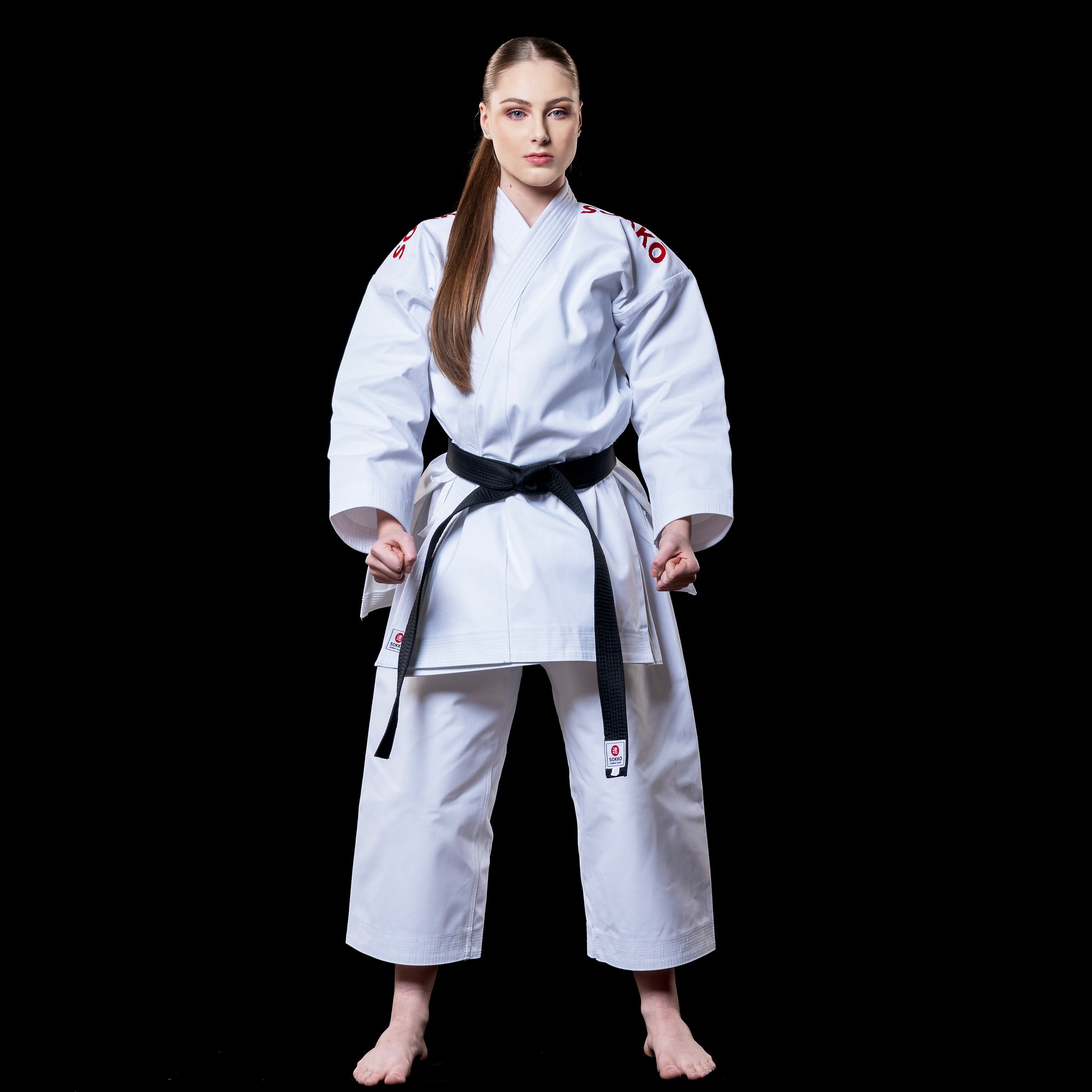Kimono de kata cu tesatura rigida si croiala competitionala, creat pentru executii precise si impact vizual puternic. Recomandat pentru examene si competitii.